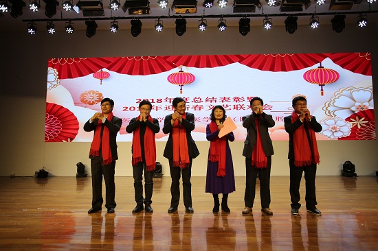 随后,在院党委书记王润玲的提议下,院领导班子集体上台,向大家拜年祝福。