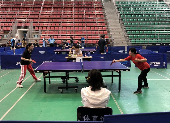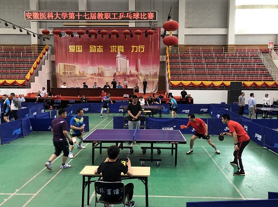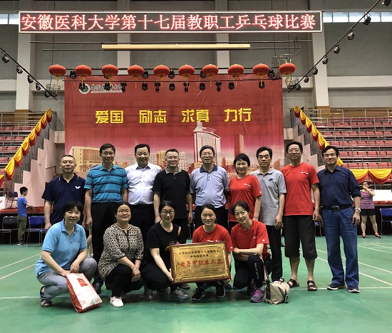 乒乓球12人代表队参加安徽医科大学在校体育馆举办的第十七届教职工乒乓球比赛。