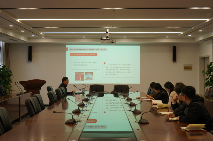 12月4日,院党委书记刘颀在高新总院11楼会议室为党群部门党支部讲授党的二十届四中全会精神专题党课。