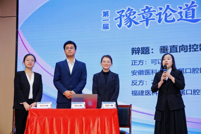 首轮8进4对决福建医科大学澳门银河娱乐 ,围绕“垂直向控制可否逆旋下颌”展开辩论,团队立足循证医学,以翔实文献数据与临床成果构建严密论证体系,成功晋级。